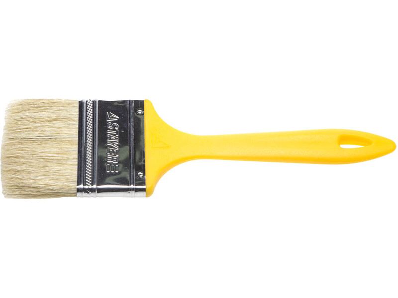 Натуральная щетина обеспечит оптимальное нанесение различных видов ЛКМ, щетина кисти надежно закреплена бандажом из никилированной стали, а наличие легкой пластмассовой рукоятки обеспечит комфортную работу