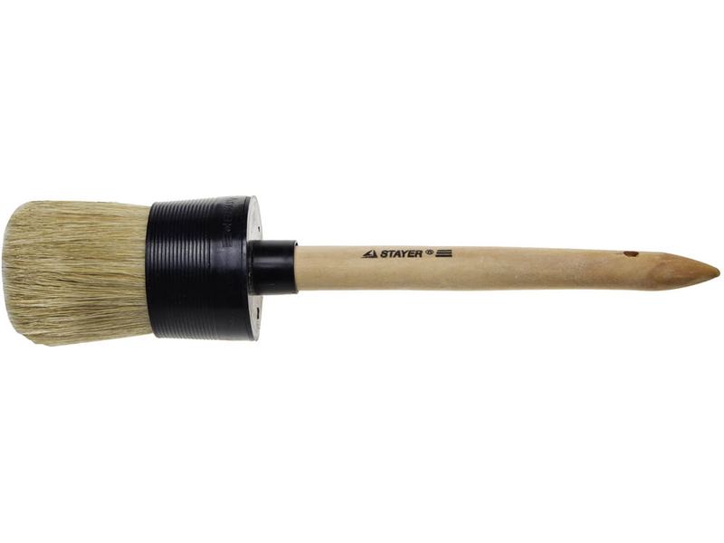 Натуральная щетина обеспечит оптимальное нанесение различных видов ЛКМ, щетина кисти надежно закреплена в пластмассовом корпусе, а наличие удобной деревянной рукоятки обеспечит комфортную работу