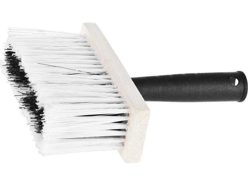 Отличное решение для работы со всеми типами ЛКМ, а так же грунтовки, побелки на большие поверхности, клеевых составов на обои, размывки потолков. Щетина кисти надежно закреплена в деревянной основе, а наличие удобной пластмассовой рукоятки обеспечит комфортную работу