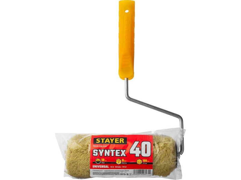 Валик малярный SYNTEX 40, 180 мм, d-40 мм, ворс 18 мм, ручка d-6 мм, STAYER-265
