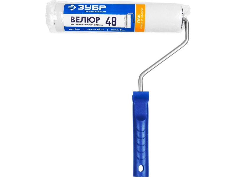 Валик малярный ВЕЛЮР 48, 240 мм, d-48 мм, ворс 4 мм, ручка d-8 мм, ЗУБР
