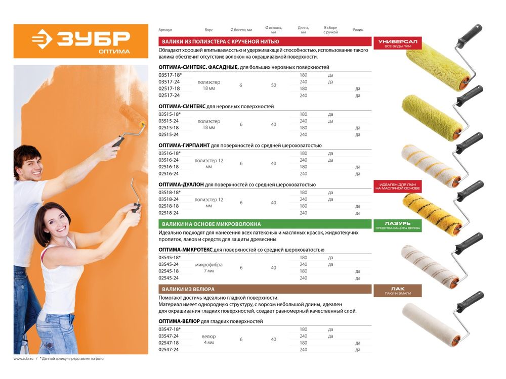 Валики ЗУБР ОПТИМА - оптимальное решение для любых покрасочных работ Преимущества