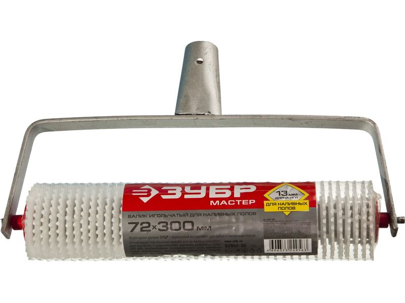 Валик игольчатый ЗУБР "МАСТЕР" для наливных полов на металлической рамке, под удлинитель, пластмассовые иглы 13мм, 72х300мм