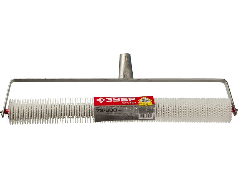 Валик игольчатый ЗУБР "МАСТЕР" для наливных полов на металлической рамке, под удлинитель, пластмассовые иглы 13мм, 72х600мм