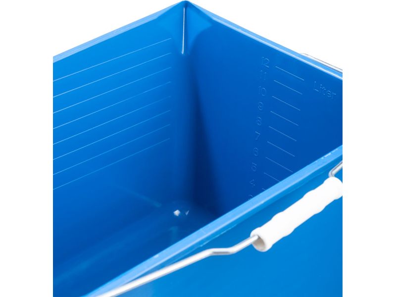 Форма ведра удобна для работы малярным валиком, специальный рельеф на стенке ведра позволит равномерно распределить краску или лак по поверхности валика, а градуировка на стенке повышает точность подбора цвета при смешивании лакокрасочных материалов. Имеет оцинкованную рукоятку и удобный носик для слива. Изготовлено из высокопрочной морозостойкой пластмассы.
