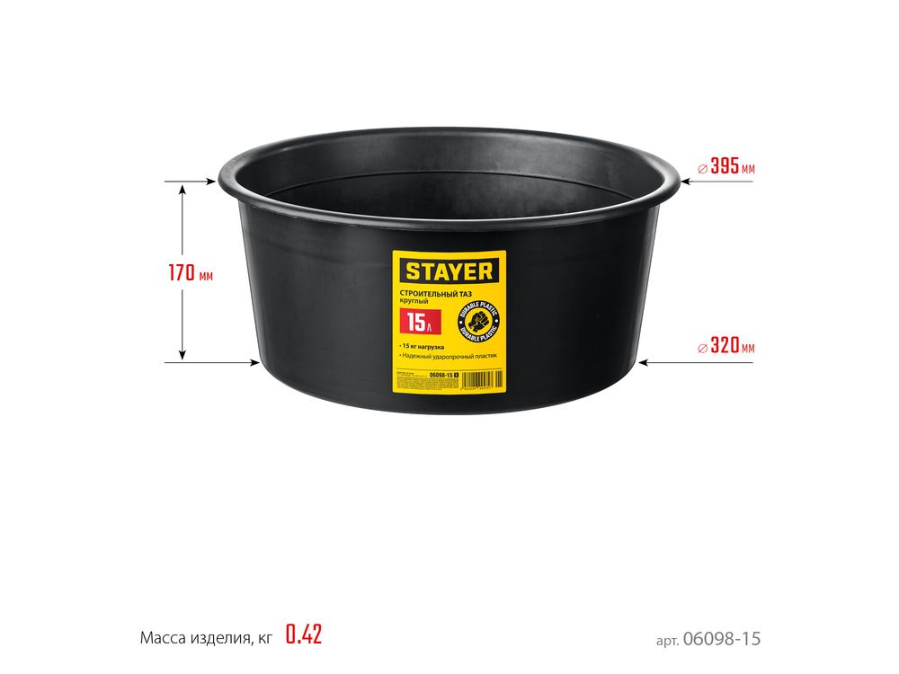 STAYER 15 л таз строительный круглый