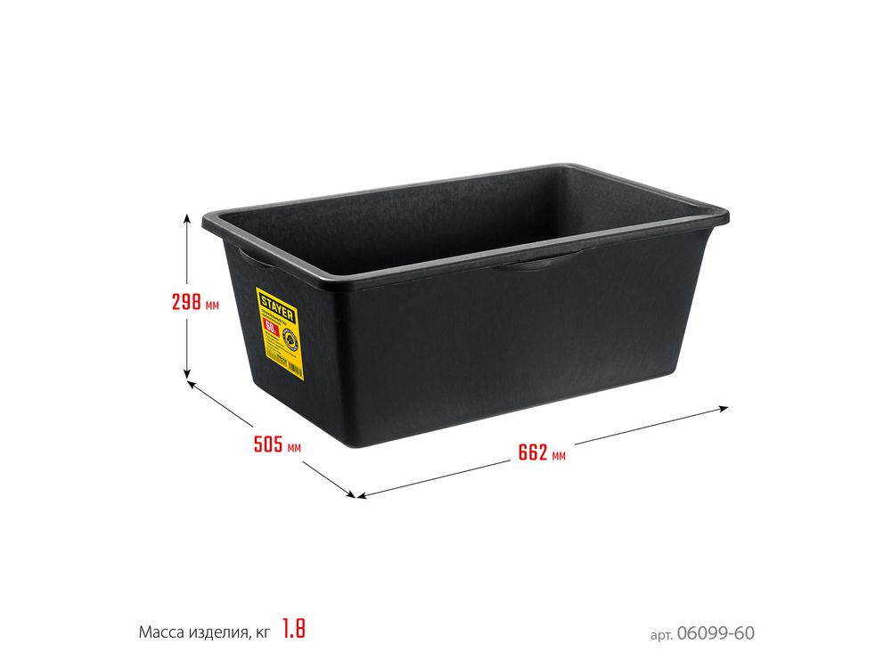 Таз строительный подходит для приготовления любых видов строительных растворов(клеевых, штукатурных, лакокрасочных). Выполнен из высокопрочного морозостойкого пластика, устойчивого к химическому и механическому воздействиям. Имеет устойчивую конструкцию и 4 формованные ручки для удобного хвата и переноски