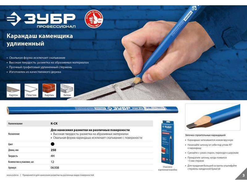 ЗУБР К-СК Каменщика строительный карандаш удлиненный 250 мм-932