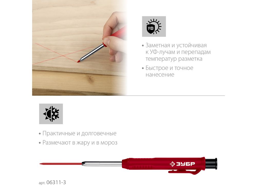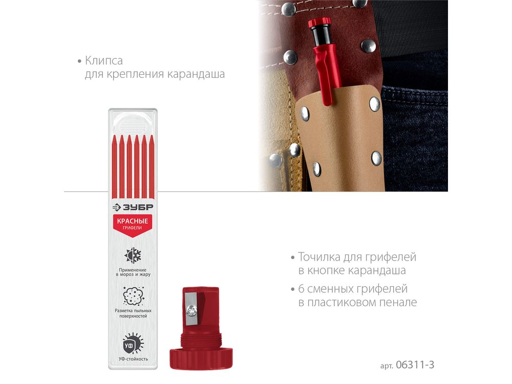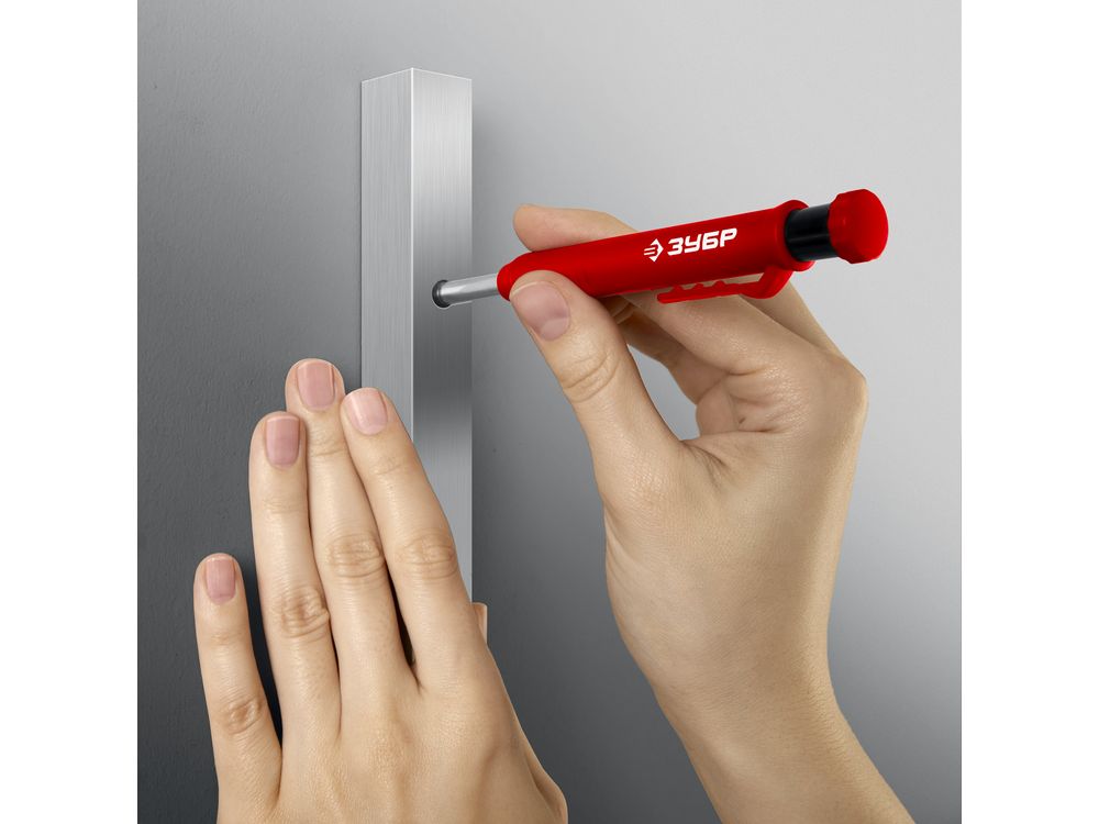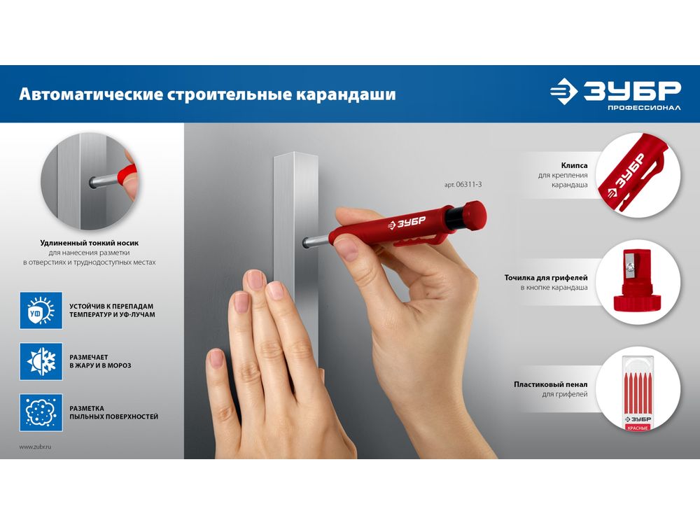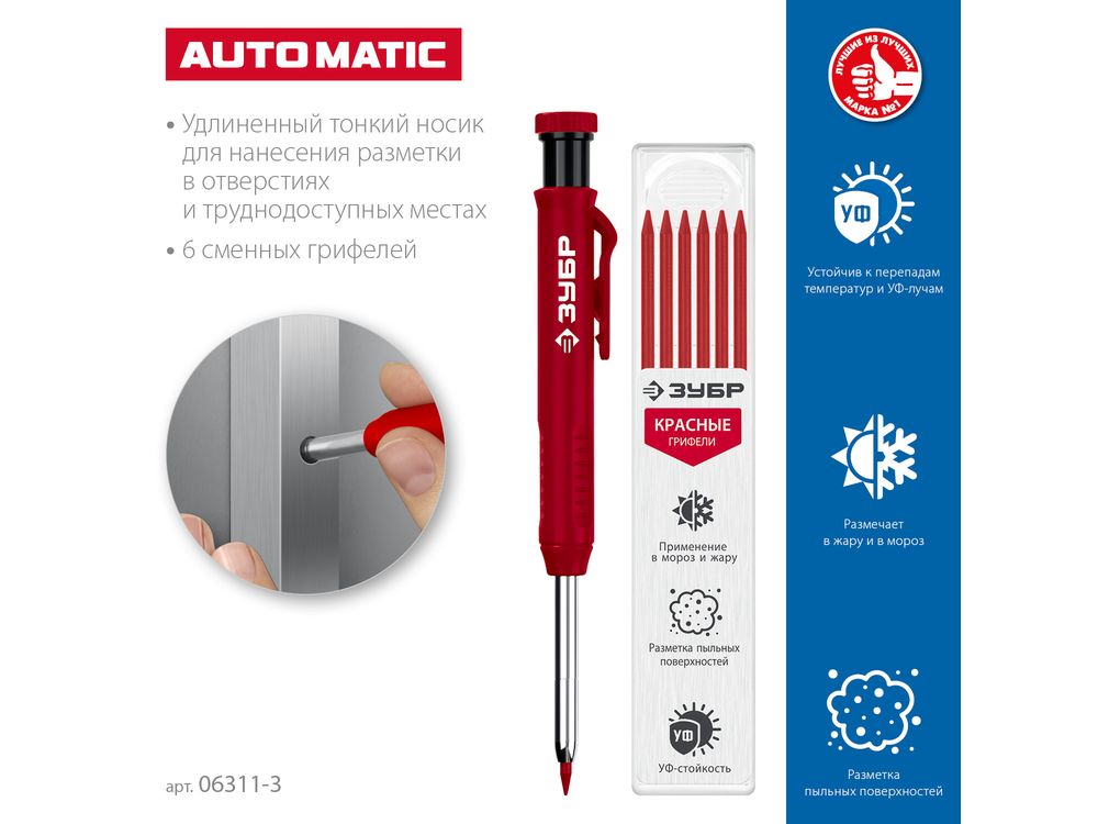 Автоматический строительный карандаш ЗУБР, красный, HB, 6 сменных грифелей, АСК, серия Профессионал-932