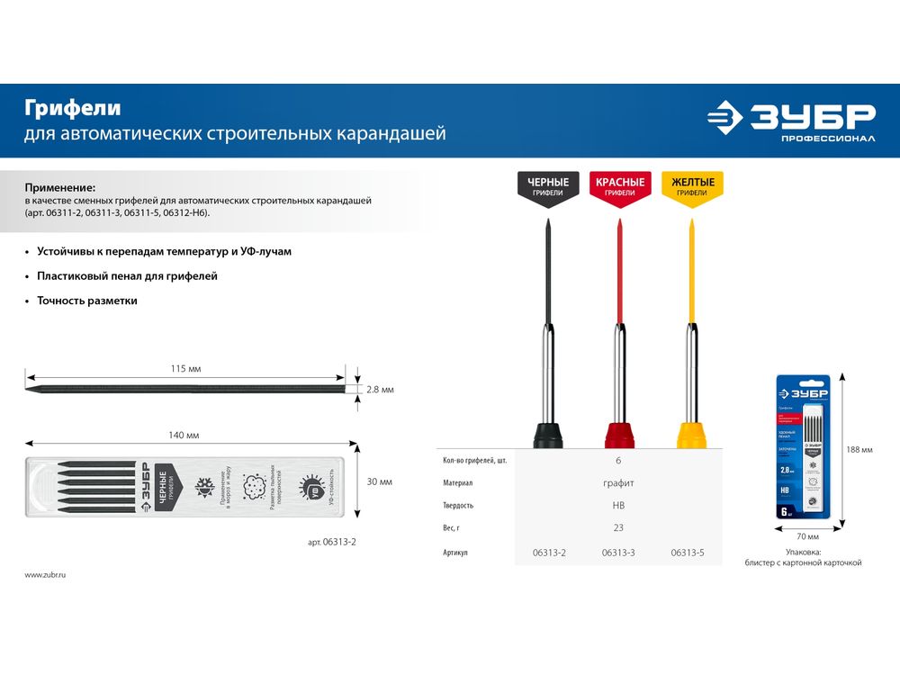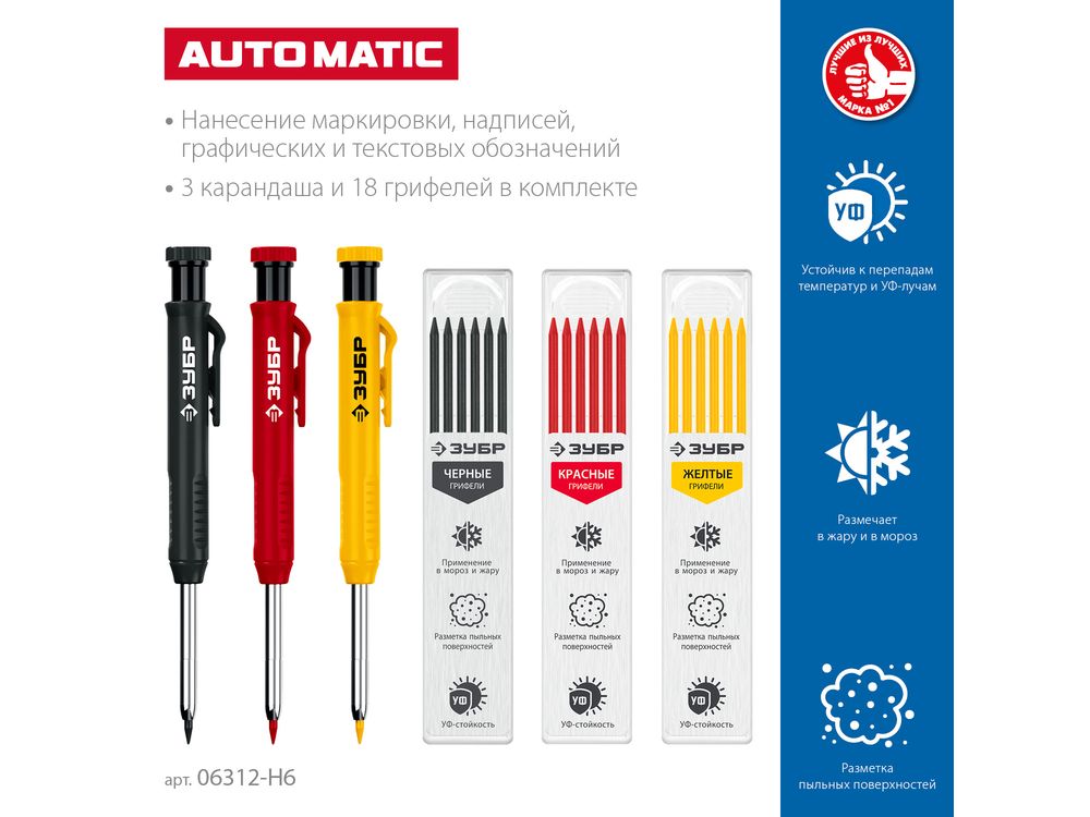 Автоматический строительный карандаш подходит для нанесения разметки на большинство материалов. Не выгорает на солнце, устойчив к температурным перепадам. Безопасен для человека и окружающей среды, т.к. не содержит токсических веществ.