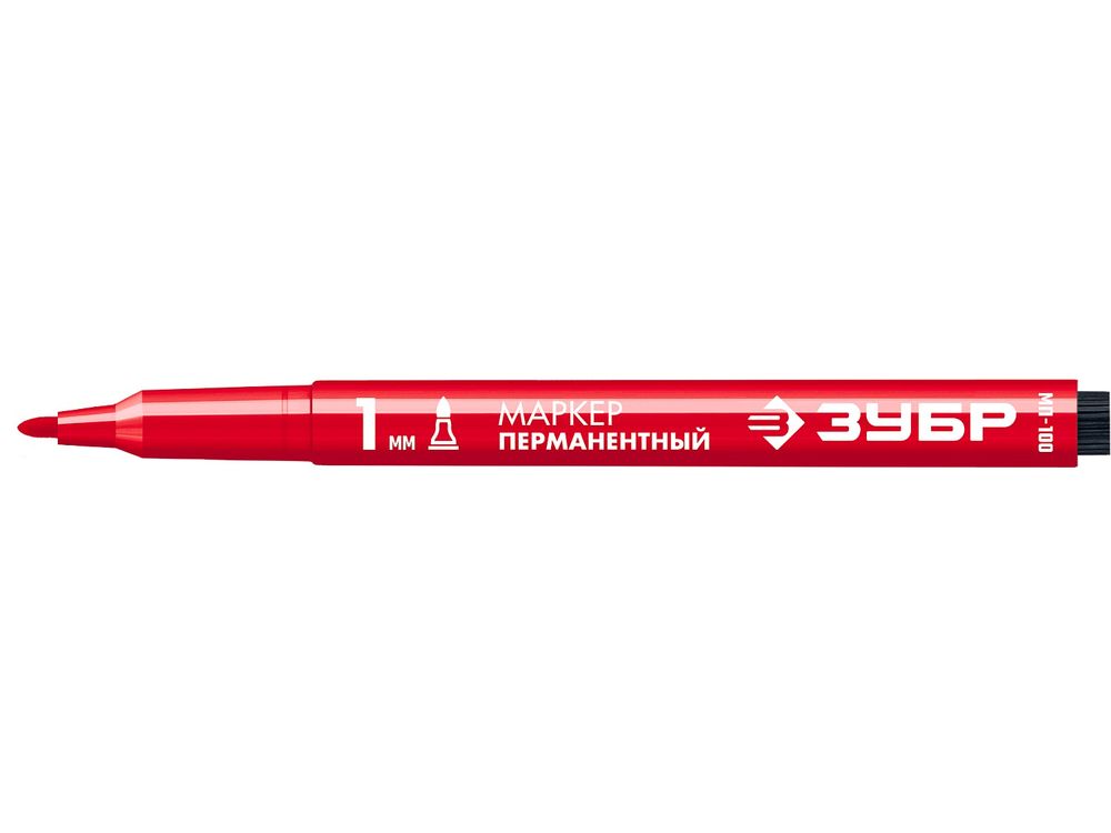ЗУБР МП-100 красный, 1 мм заостренный перманентный маркер