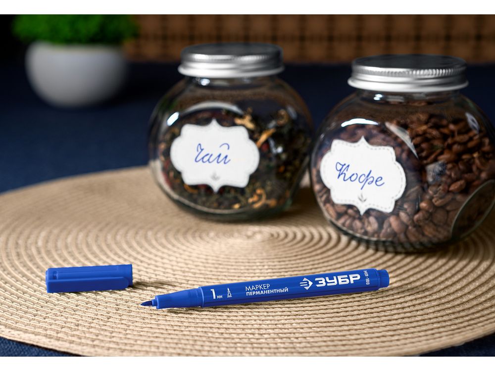 ЗУБР МП-100 1 мм, заостренный, синий, Перманентный маркер, ПРОФЕССИОНАЛ (06320-7)