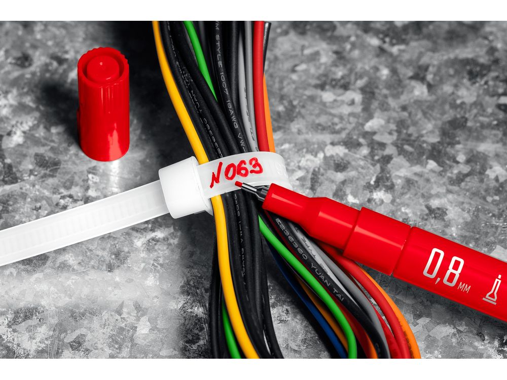 Универсальный маркер с экстратонким носиком и жидкой быстросохнущей краской, подходит для любой поверхности. Не смывается водой, не выгорает на солнце и устойчив к температурным перепадам. Практически безопасен для человека, т.к. не содержит токсических веществ.