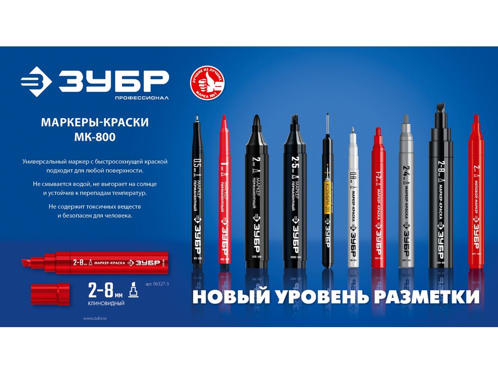 ЗУБР МК-800 2-8 мм, клиновидный, черный, экстрабольшой объем, Маркер-краска, ПРОФЕССИОНАЛ (06327-2)-932