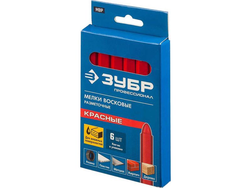 МВР красные, мелки восковые разметочные, 6 шт, ЗУБР-932