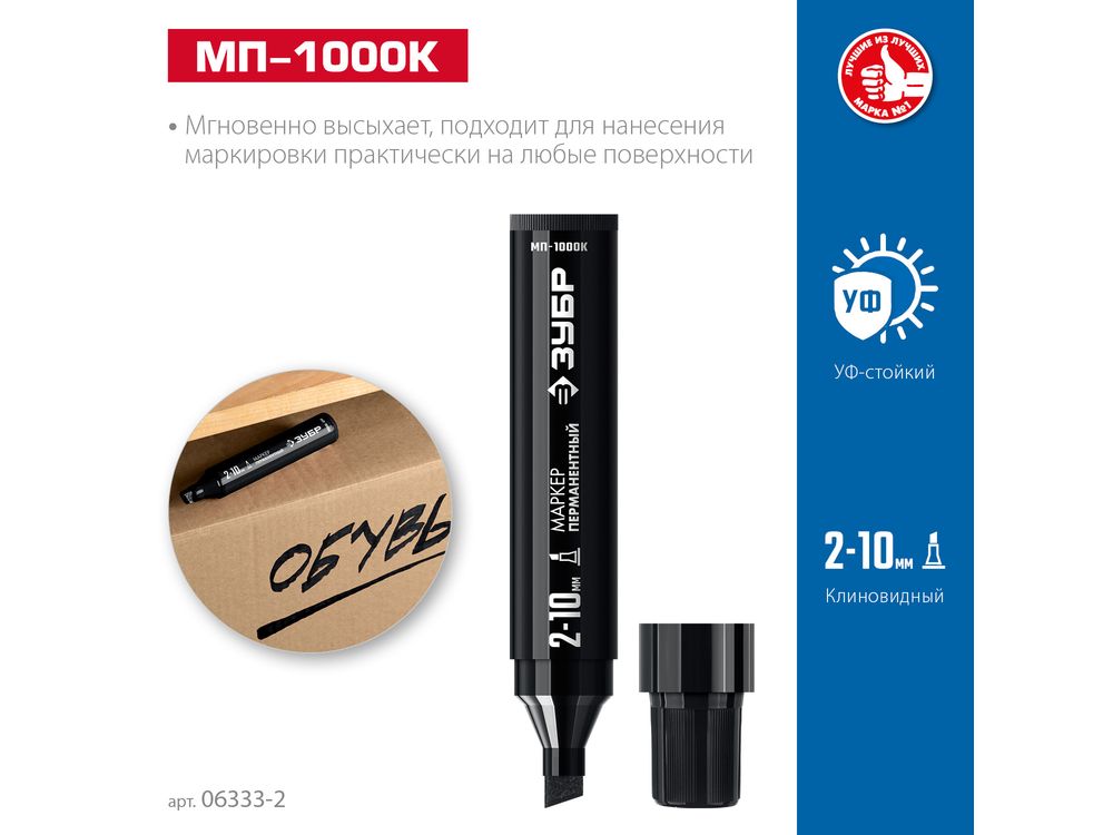 ЗУБР МП-1000К 2-10 мм, клиновидный, черный, Перманентный маркер, ПРОФЕССИОНАЛ (06333-2)