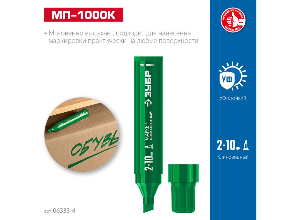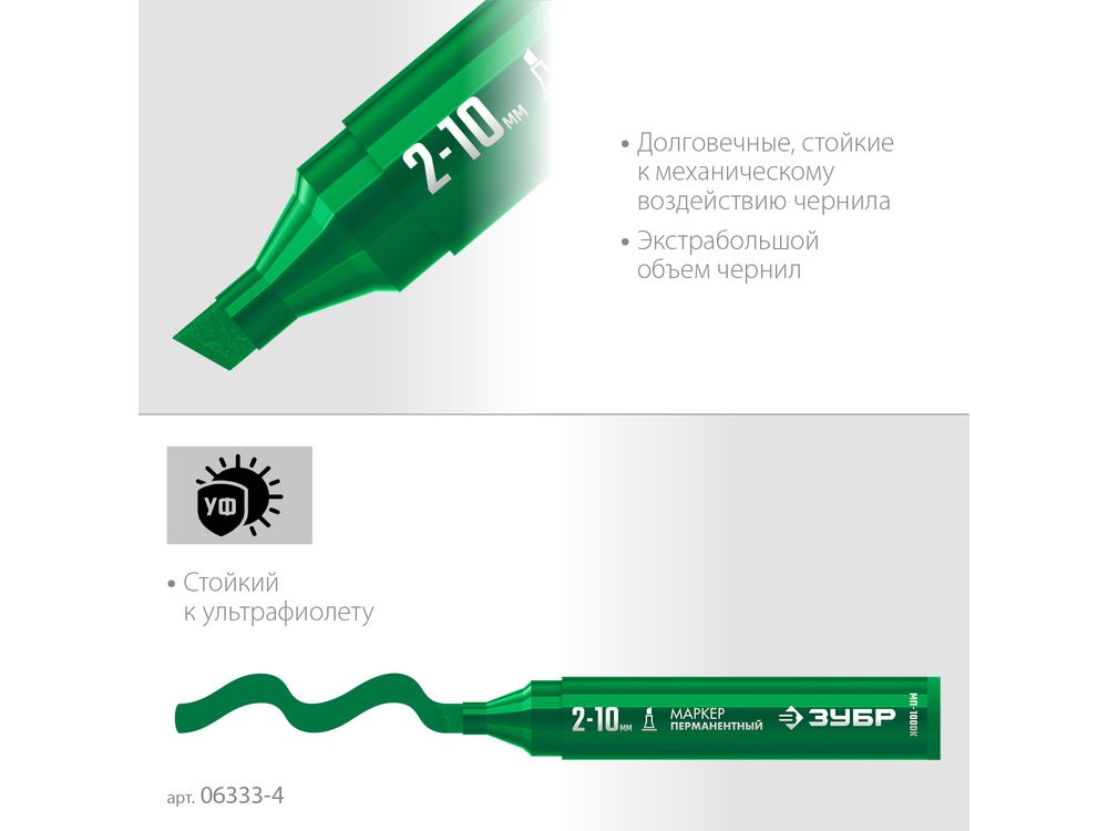 ЗУБР МП-1000К 2-10 мм, клиновидный, зеленый, Перманентный маркер, ПРОФЕССИОНАЛ (06333-4)