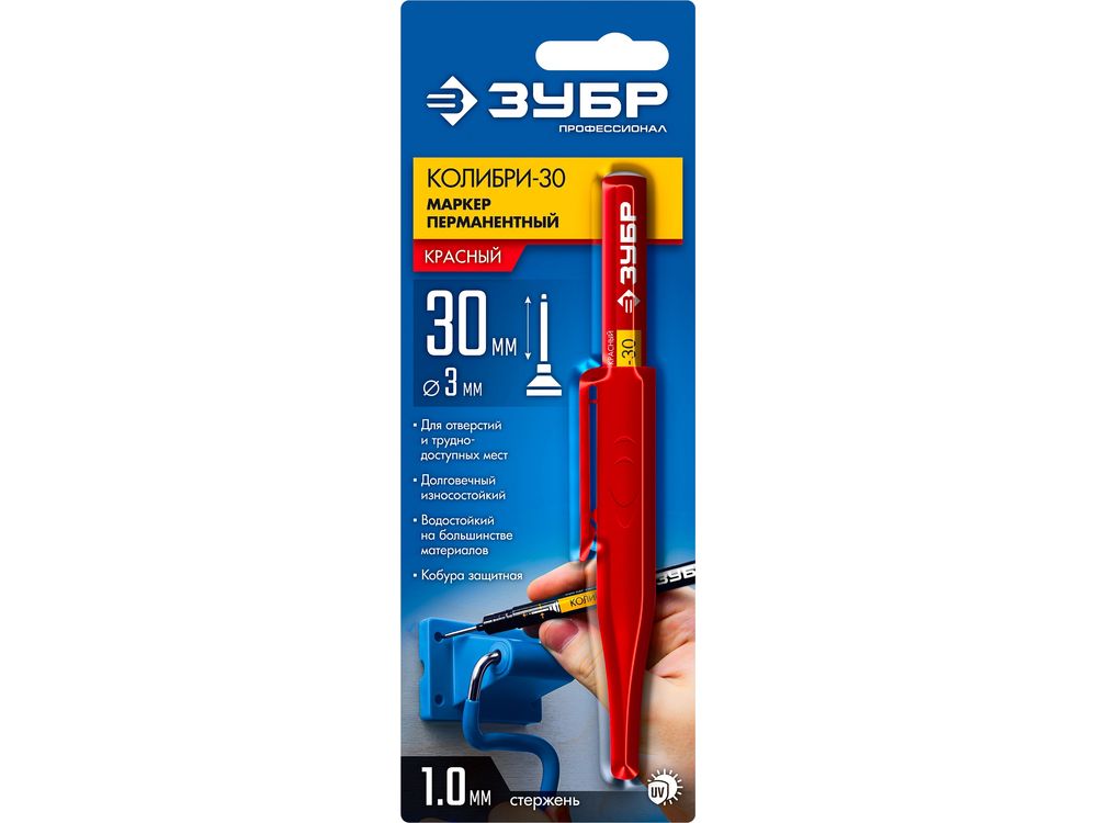 ЗУБР КОЛИБРИ-30 1 мм, заостренный, красный, Перманентный маркер, ПРОФЕССИОНАЛ (06338-3)