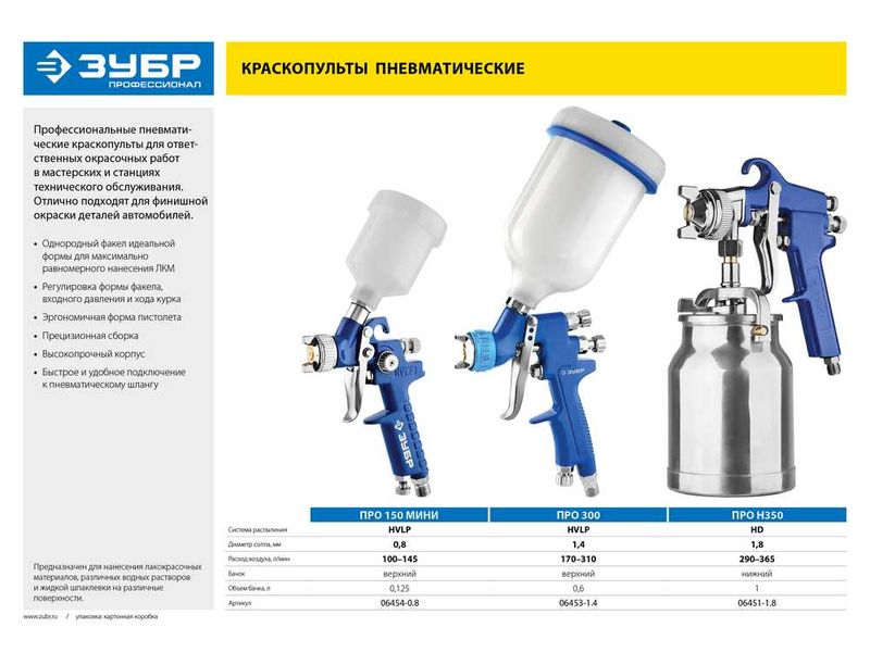 Профессиональный пневматический краскопульт ЗУБР "ПРО 300" предназначен для выполнения ответственных окрасочных работ на специальзированных предприятиях, в покрасочных мастерских и станциях технического обслуживания. Отличается повышенной надежностью, увеличенным сроком службы, точностью изготовления и отличной эргономикой.