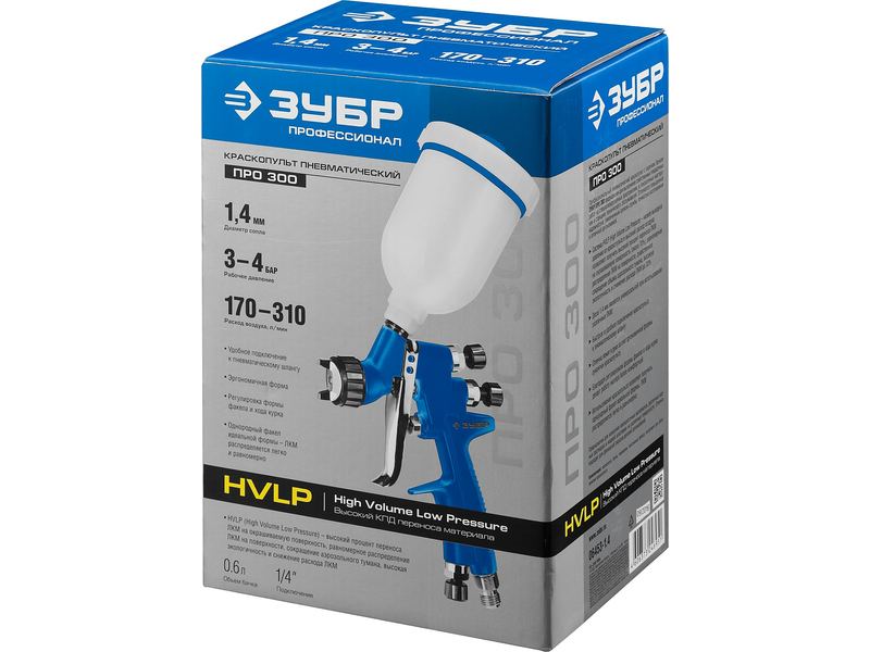 Краскопульт пневматический ЗУБР Профессионал ПРО 300 HVLP c верхним бачком, 1.4мм