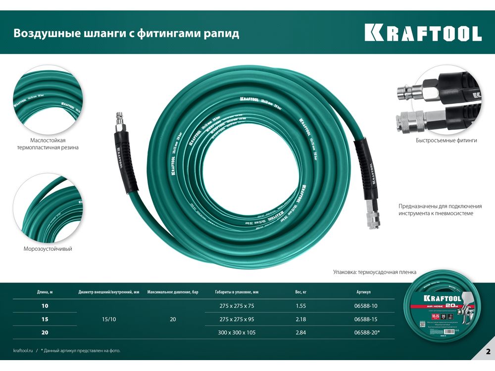 Воздушный шланг с фитингами рапид 10 м, 10х15 мм, 20 бар, KRAFTOOL