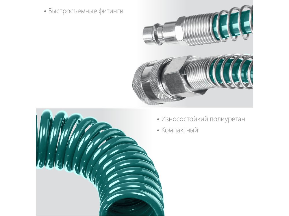 Воздушный спиральный шланг с фитингами рапид 15 м, 8х12 мм, 15 бар, KRAFTOOL