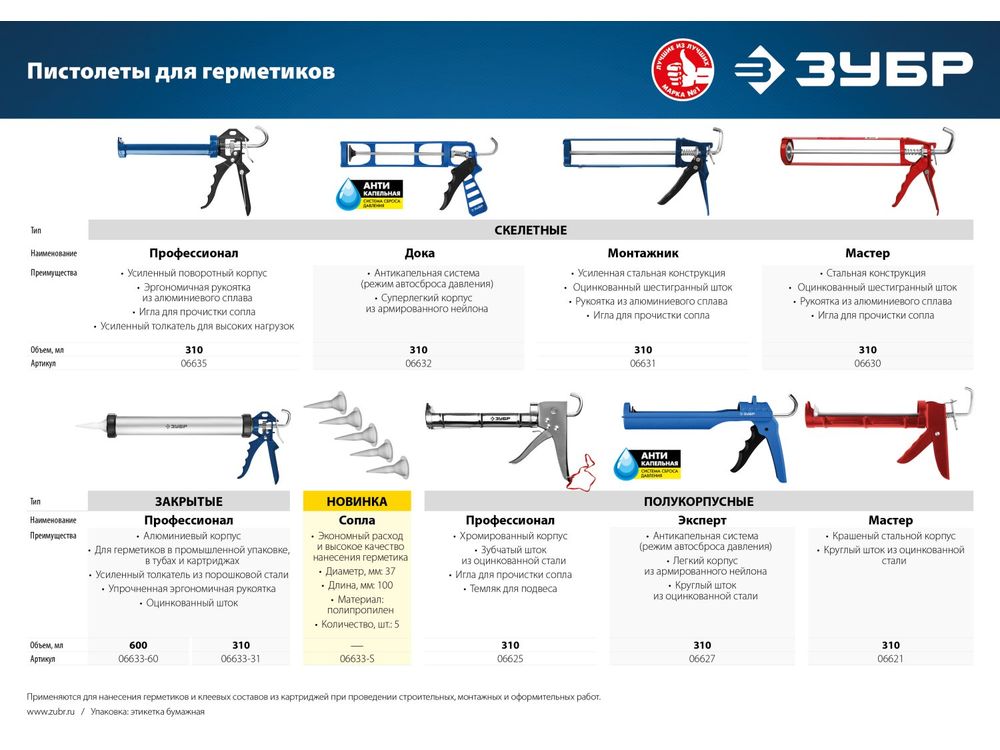 Купить ЗУБР запасные сопла для закрытых пистолетов для герметика, 5 шт