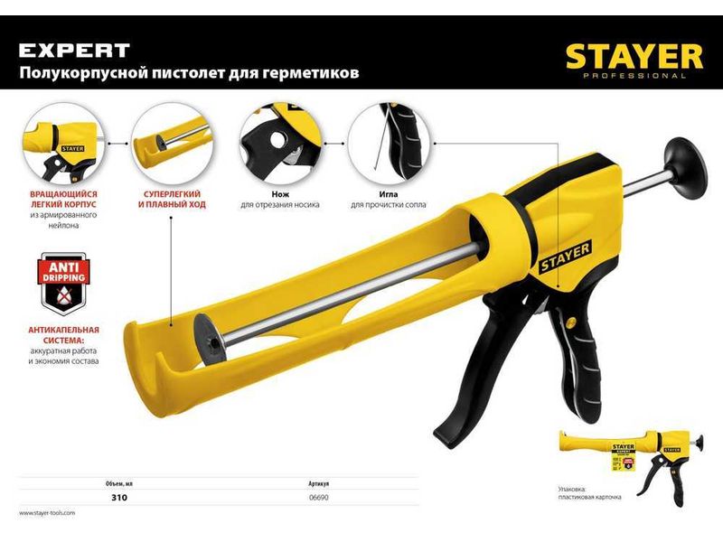 Купить STAYER полукорпусной пистолет для герметика Expert, антикапельная система, 310 мл, серия Professional