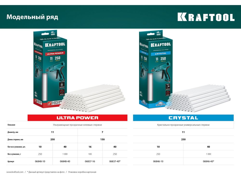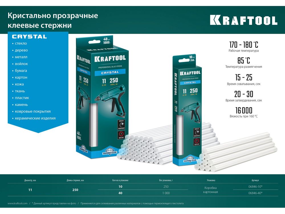 KRAFTOOL Cristal кристально прозрачные клеевые стержни, d 11 x 250 мм (11-12 мм) 10 шт. 250 г.-726