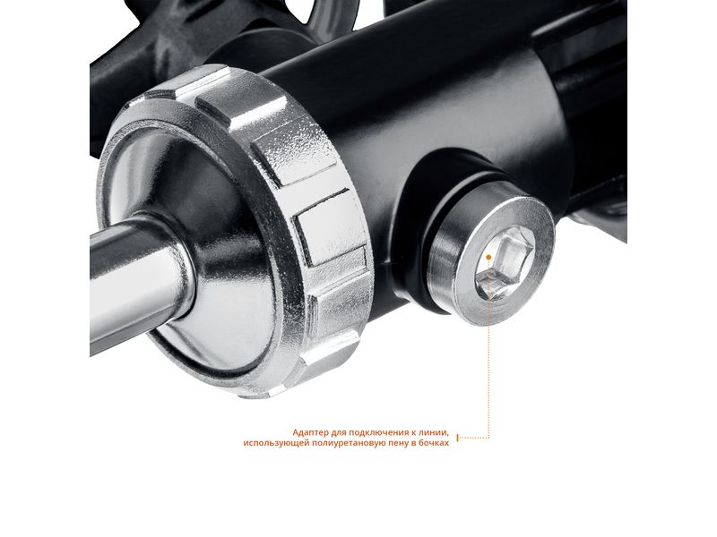 Комплектуется адаптером для подключения к линии, использующей полиуретановую пену в бочках
