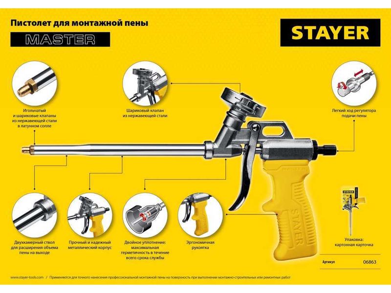 Применяется для нанесения полиуретановой пены, упакованной в баллоны.