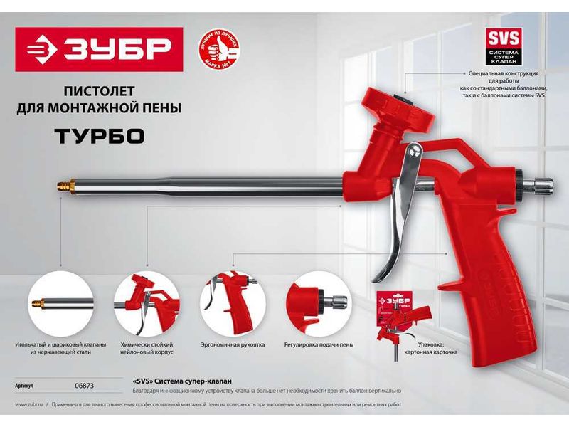 ЗУБР ТУРБО пистолет для монтажной пены, нейлоновый корпус