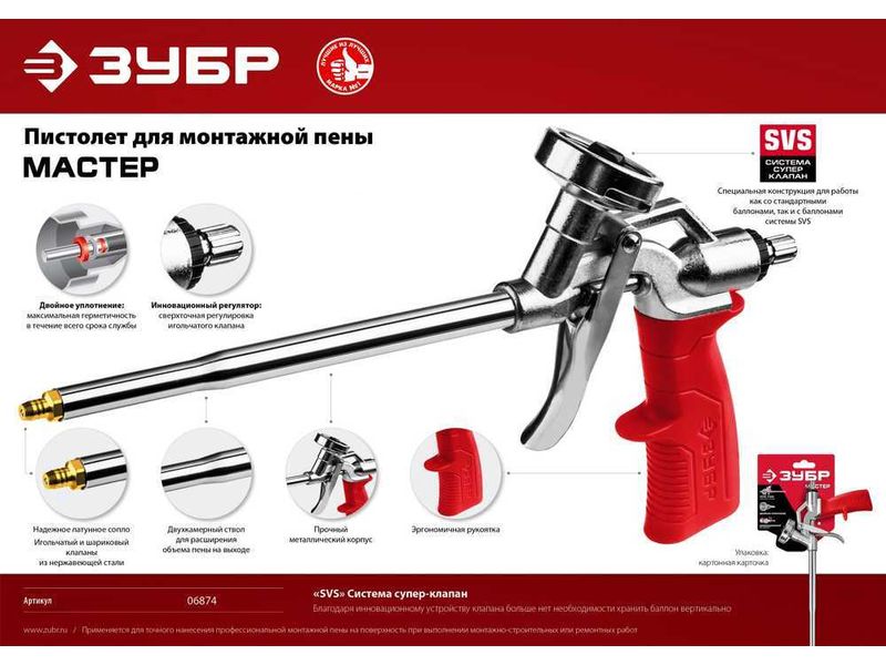 Купить ЗУБР МАСТЕР пистолет для монтажной пены, металлический корпус