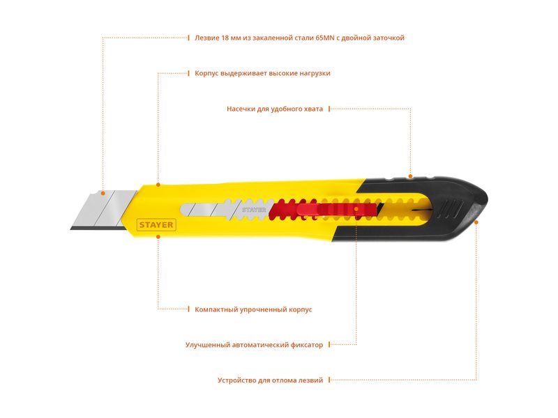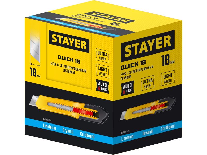 Нож из АБС пластика QUICK-18, сегмент. лезвия 18 мм, STAYER