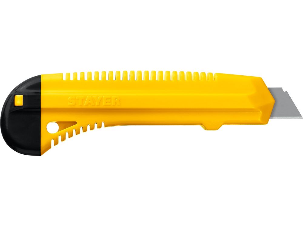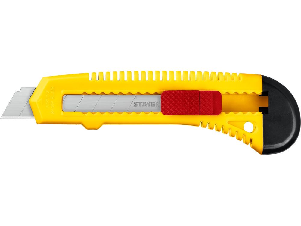 Нож упрочненный из АБС пластика со сдвижным фиксатором FORCE, сегмент. лезвия 18 мм, STAYER