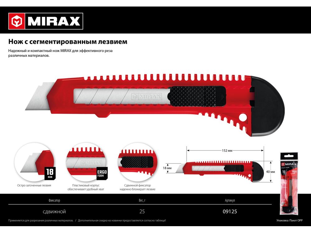 Нож со сдвижным фиксатором, сегмент. лезвия 18 мм, MIRAX