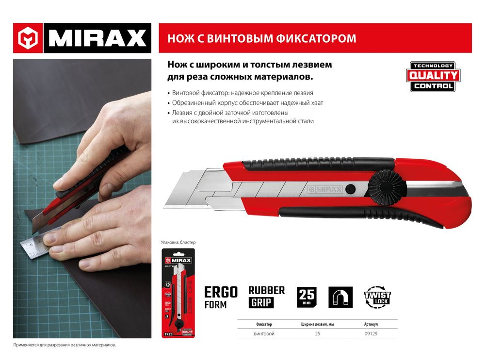 Нож с винтовым фиксатором, сегмент. лезвия 25 мм, MIRAX