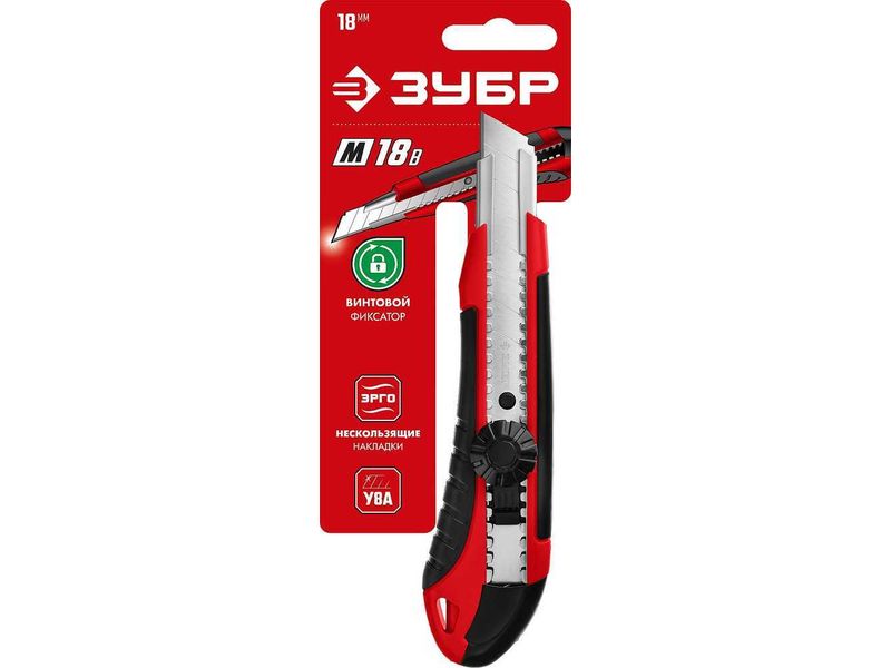 Нож с винтовым фиксатором М-18В, сегмент. лезвия 18 мм, ЗУБР