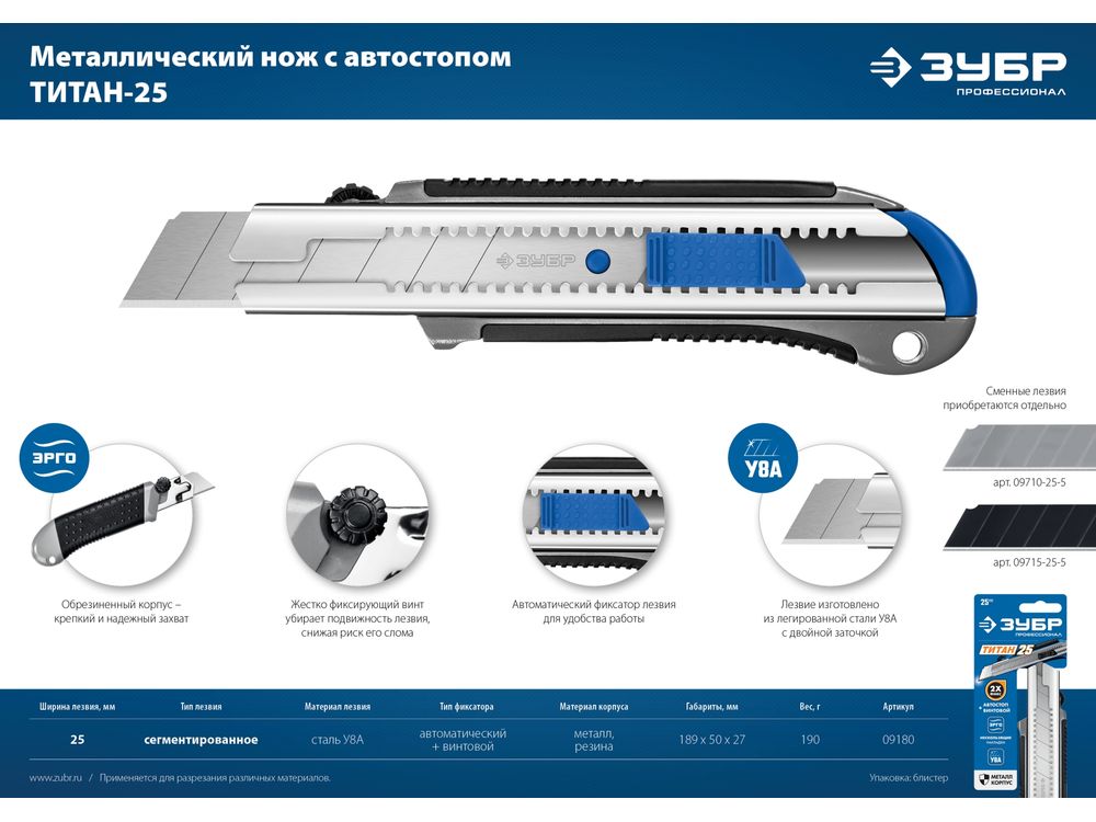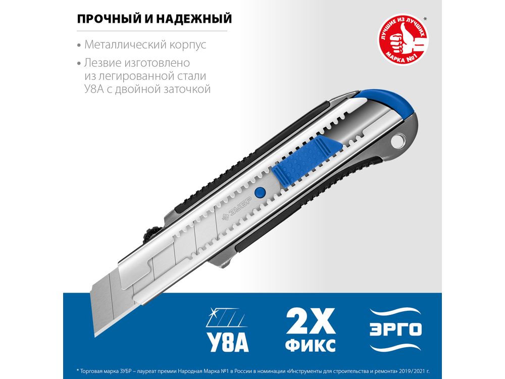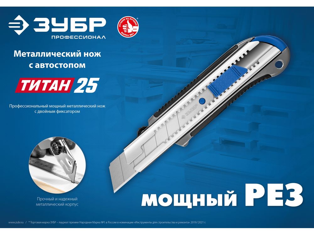 Металлический нож с автостопом ТИТАН-25, сегмент. лезвия 25 мм, ЗУБР Профессионал