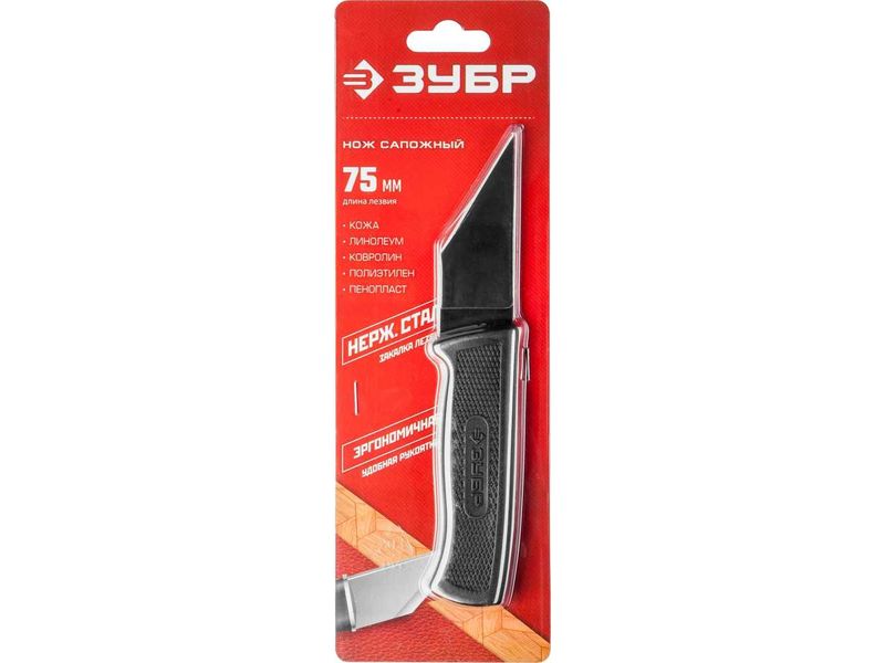 Сапожный нож ЗУБР применяется для реза листовых материалов: кожа, резина, линолеум и т.д. Изготовлен из высококачественной стали, что обеспечивает высокий ресурс и надежность в повседневных хозяйственных работах.