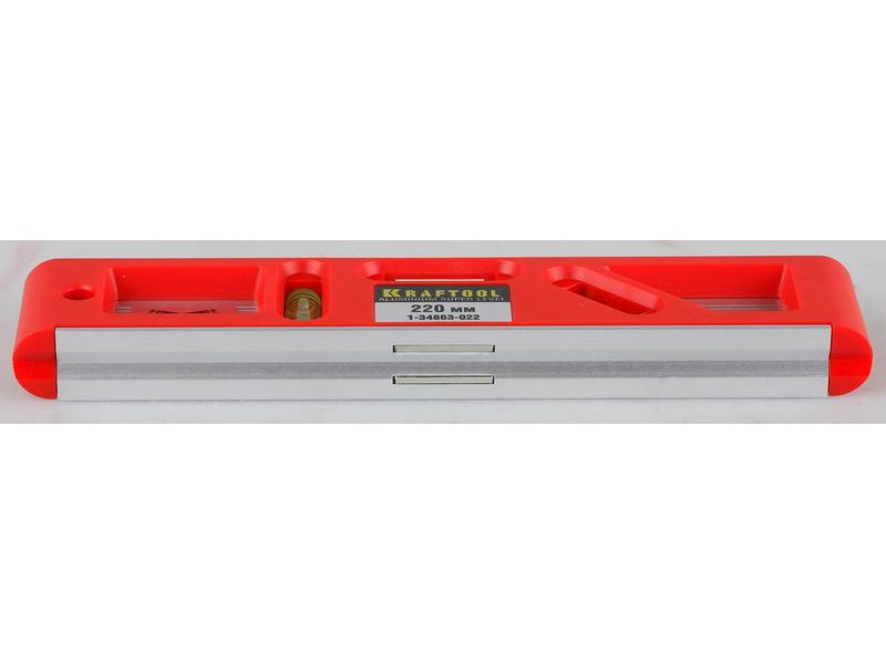Уровень с магнитом изготовлен из алюминия, что делает его прочным и долговечным
