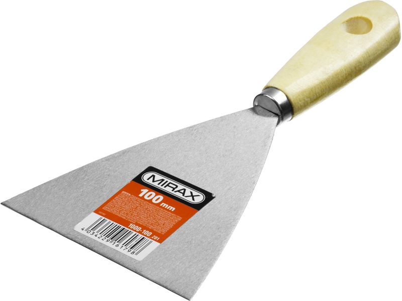 Шпатель MIRAX стальной, c деревянной ручкой, 100мм