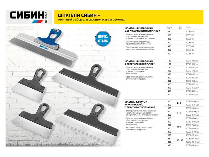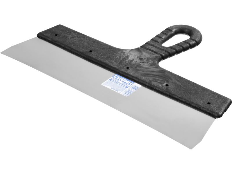 Шпатель СИБИН - отличный выбор для строительства и ремонта! Полотно из нержавеющей стали обеспечивает надежность и долгий срок службы инструмента, а удобная пластмассовая рукоятка создает условия для комфортной работы. Незаменимый инструмент при проведении работ на больших поверхностях.