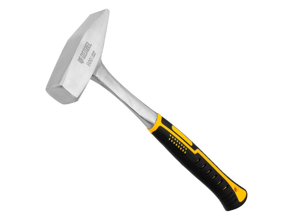Цельнометаллический слесарный молоток Denzel 10405 с головкой весом 800 г и двухкомпонентной рукояткой предназначен для работы с металлическими заготовками, забивания гвоздей, штырей, дюбелей и других крепежных элементов. Необходим во время строительства, ремонта, сборки и установки мебели, также пригодится дома, на даче и в гараже. Инструмент рекомендован для профессионального и домашнего применения.
