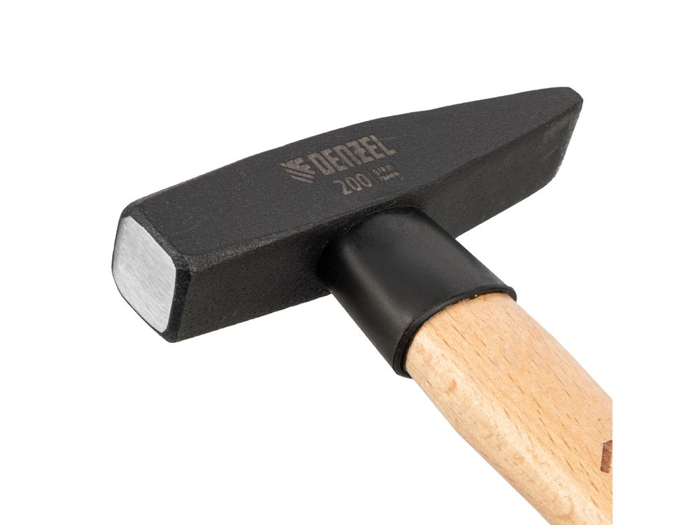 Слесарный молоток Denzel 10426 с квадратным кованым бойком весом 200 г предназначен для забивания гвоздей и другого крепежа и для работы с металлическими заготовками. Инструмент применяется во время слесарных или столярных работ в быту, также будет полезен профессионалам.