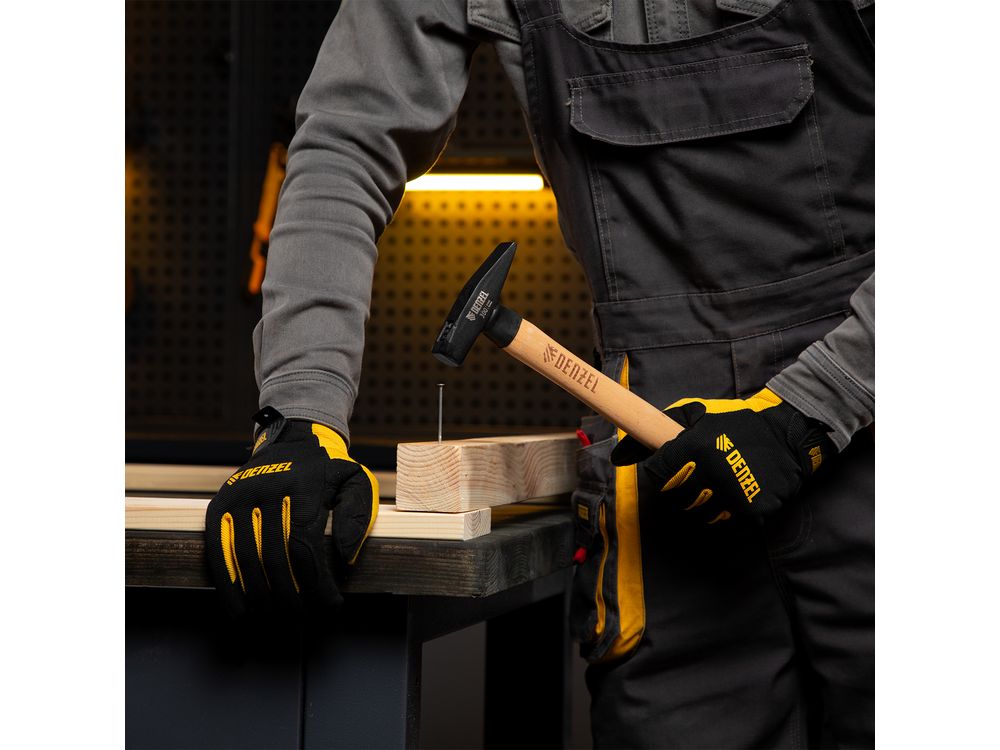 Слесарный молоток Denzel 10427 с квадратным кованым бойком весом 300 г предназначен для забивания гвоздей и другого крепежа и для работы с металлическими заготовками. Инструмент применяется во время слесарных или столярных работ в быту, также будет полезен профессионалам.