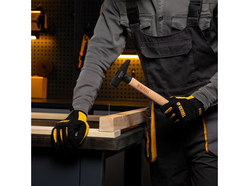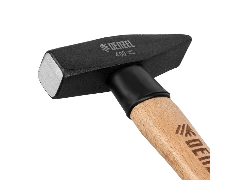 Слесарный молоток Denzel 10428 с квадратным кованым бойком весом 400 г предназначен для забивания гвоздей и другого крепежа и для работы с металлическими заготовками. Инструмент применяется во время слесарных или столярных работ в быту, также будет полезен профессионалам.