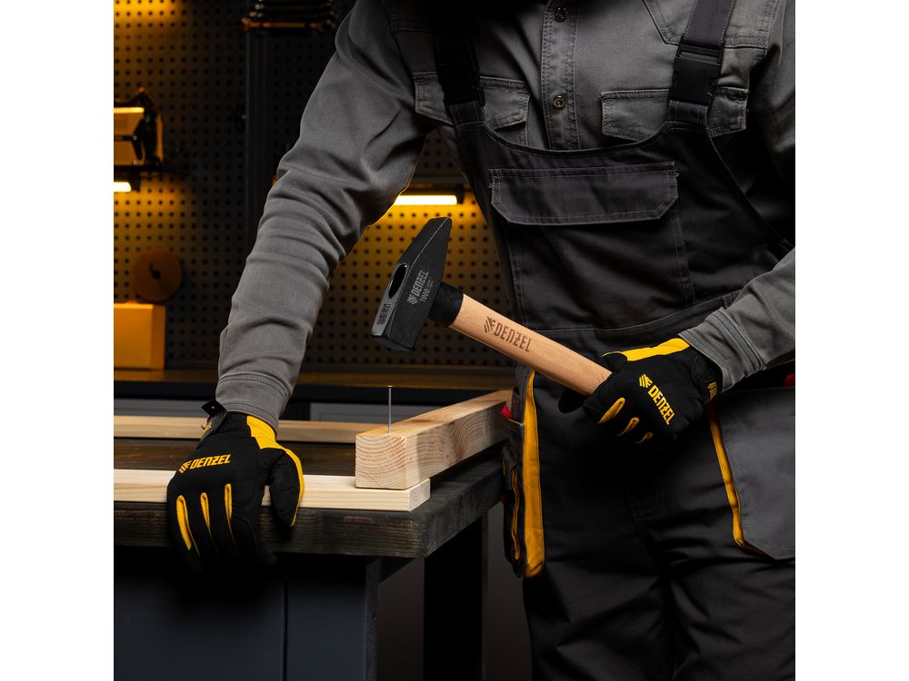 Слесарный молоток Denzel 10437 с квадратным кованым бойком весом 1000 г предназначен для забивания гвоздей и другого крепежа и для работы с металлическими заготовками. Инструмент применяется во время слесарных или столярных работ в быту, также будет полезен профессионалам.
