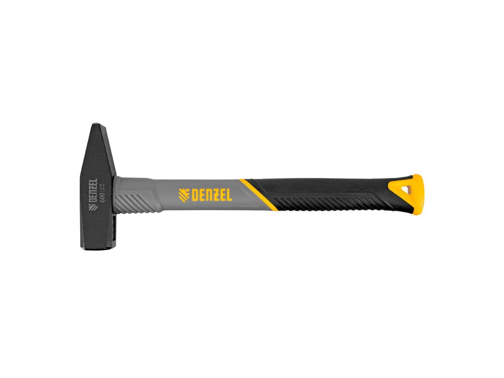 Молоток слесарный кованый Denzel 10486 с квадратным бойком весом 600 г и трехкомпонентной фибергласовой рукояткой с TPR-покрытием предназначен для работы с металлическими заготовками, забивания гвоздей, штырей, дюбелей и другого крепежа. Рукоятка выполнена в эксклюзивном дизайне. Молоток рекомендован для профессионального и домашнего применения.