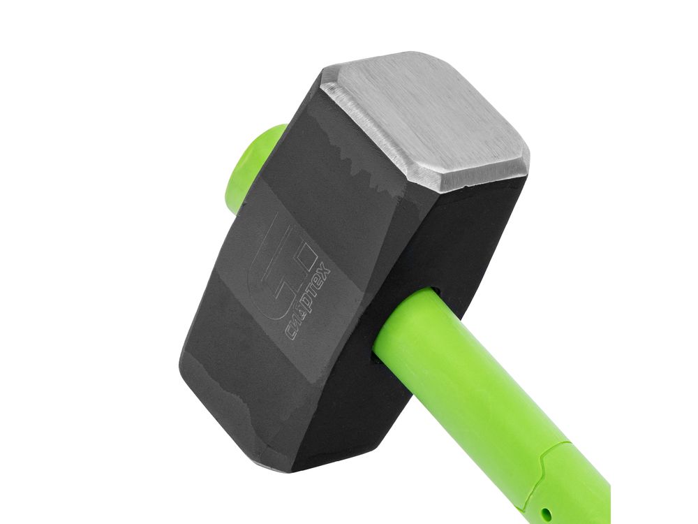 Кувалда Сибртех 10900 длиной 890 мм и весом 9000 г, с фибергласовой обрезиненной рукояткой, предназначена для демонтажных работ — разрушения конструкций из камня, кирпича, бетона. Удлиненная рукоятка позволяет наносить удары большой силы, а прочный кованый боек не подвержен деформациям. Кувалда рекомендована для профессионального применения.